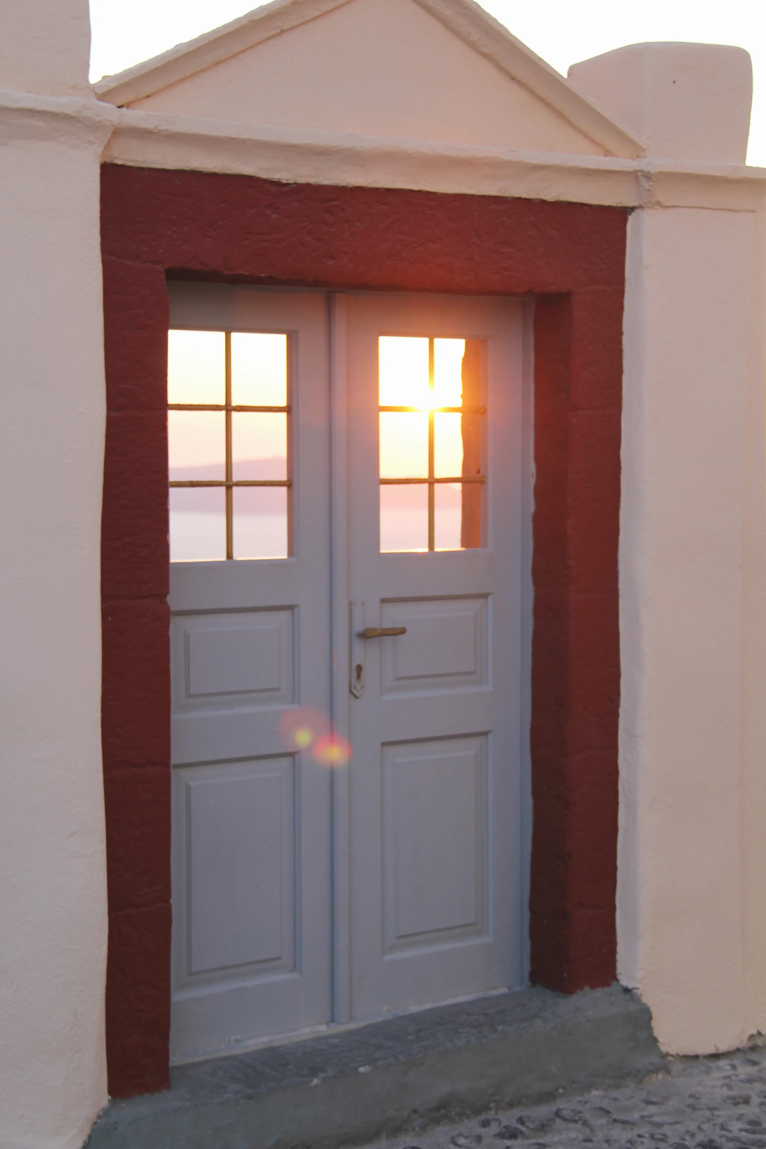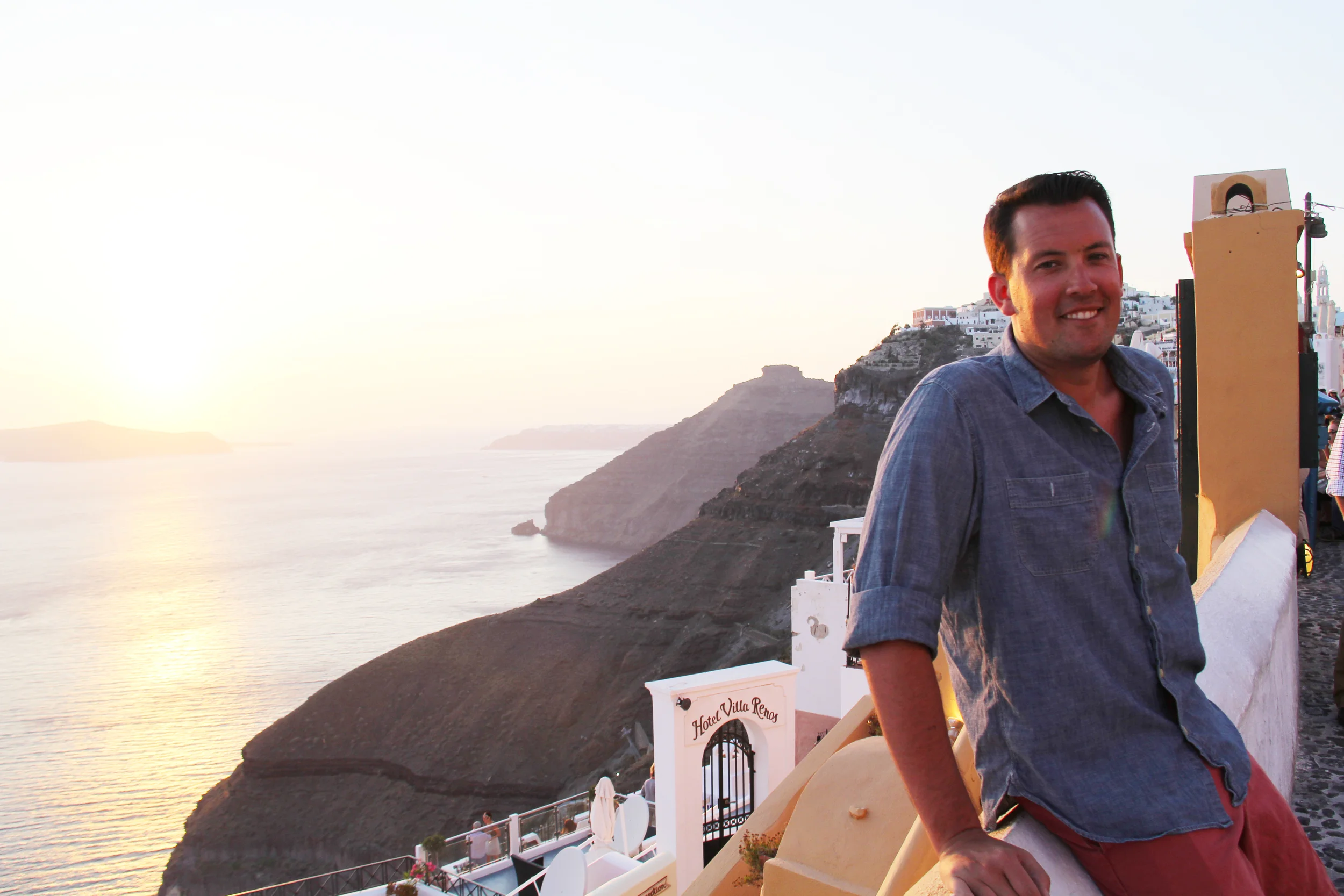 We arrived in the early evening, and after a quick cab ride, at our hotel, On The Rocks, in Imegrivoli, before sunset. We immediately took in the view from the terrace of our room. (If you have seen pictures of Santorini, specifically the side of the island that overlooks the caldera, you know that the villages are built into the side of the cliff, hundreds of feet above the water. It is breathtakingly beautiful and a bit terrifying at the same time. Out in front of you are the Aegean Sea and the famed Santorini volcano.) As we walked to dinner, we watched the sun set, catching the last little bit as we sat down to eat at Mezzo, recommended by our hotel. Mezzo served traditional Greek cuisine, which was excellent, and while they did not continue the tradition of watermelon at the end of the meal, they adhered to another, the offering of some port, which Jared enjoyed.