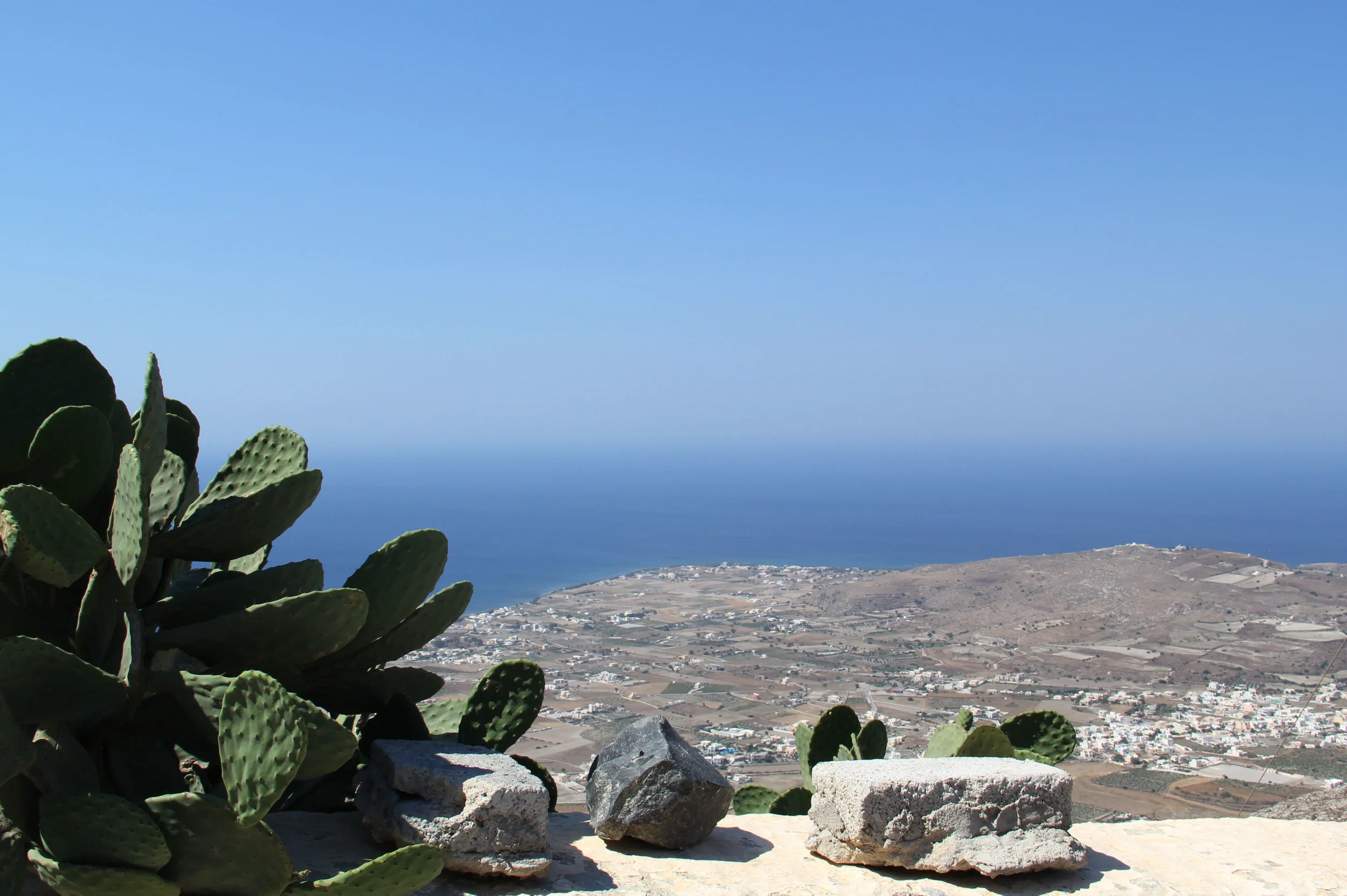 Jared posted a photo to Instagram while we were away, in a t-shirt that says 'I <3 IOS'. While we can only really speak to the little town we stayed in, and while it might not be love, our time in Ios was positive. We arrived pretty late, around 9:30 (damn Greek ferries) but were picked up but our hotel (Ios Palace Hotel) which made life easy. After a 15-minute ride we arrived, checked in, and had dinner at the hotel's restaurant, Tomatini. Sometimes hotel restaurants can be hit-or-miss, but we were very pleased with our dinner there. The menu was limited, but as Jared put it, "What they did they did well." It was one of the only meals I had meat at, pork meat balls with mint paired with crushed tomatoes and served with a crisp pita, and I was glad I did. Plus, this was the first restaurant where our waiter came back to ask how everything was (one of the big differences between restaurant service in the U.S. and many of the tavernas and restaurants we ate at.) Moving on. On Friday we headed to the beach early, and stayed through the early afternoon. The beach, Mylopotas Beach, was simple, quiet but not deserted, sandy not rocky, and the water was a bit warmer than Mykonos, which was nice, and cost of beach chairs and an umbrella pretty inexpensive. After lunch (smoothies and sandwiches from a local shop) we spent the rest of our afternoon poolside at the hotel. It sounds like we were pretty lazy in Ios, and we were. In my defense though I finished the first of two books that day, The Kitchen House (part of the honeymoon bag from my bridesmaids and a really good read.) So, not totally lazy. In the late afternoon/early evening we headed back to the Ios port to catch our ferry to Santorini.
